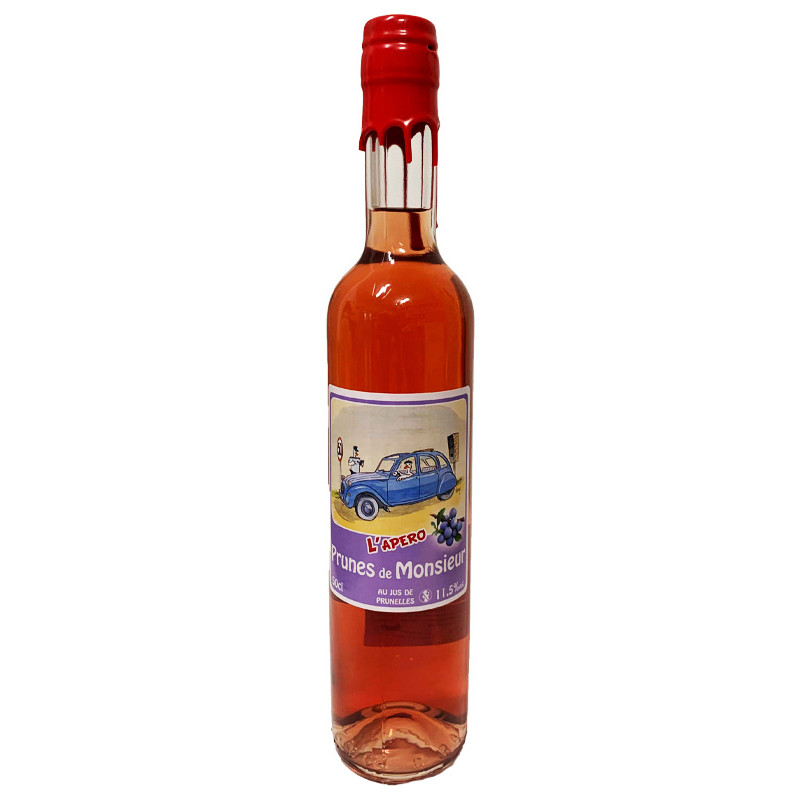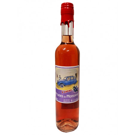 Nous proposons ce vin apéritif dans un design exclusif intitulé "Prunes de Monsieur".