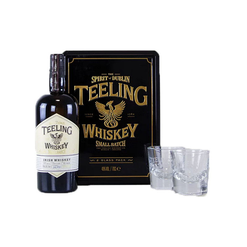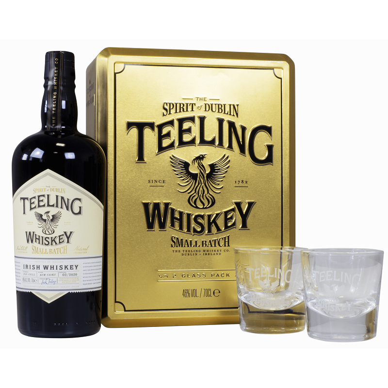 Découvrez notre Coffret Cadeau Métal Teeling Blend & 2 verres. Le Whisky teeling Blend est né de l’assemblage de whiskies de malt et de grain.