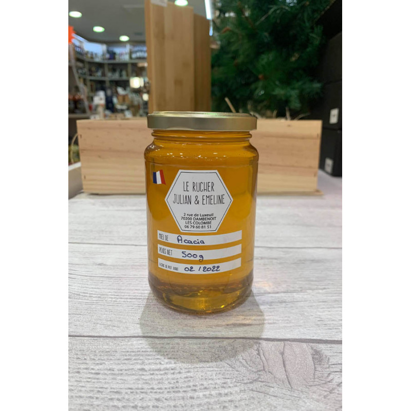 Ce Miel d'acacia provient de chez Le Rucher de Julian et Emeline en Haute-Saône. La Haute-Saône est un département français appartenant à la région de Bourgogne-Franche-Comté. Le département produit des spécialités culinaires reconnues nationalement telles que le biscuit de Montbozon ou le kirsch de Fougerolles.