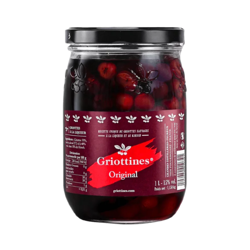 Ces Griottines sont plébiscitées dans le monde entier par des chefs étoilés pour leurs fraîcheurs et finesses. Ce sont des griottes sauvages calibrées, dénoyautées et qui ont macéré dans la liqueur.