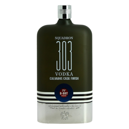 Squadron 303 Vodka lance une édition limitée D-DAY Calvados Cask Finish. Disponible en flasque ou coffret cadeau. Il s’agit de la toute première vodka affinée en fut de Calvados, en collaboration avec la Distillerie Coquerel. Cette rencontre insolite entre la pomme de terre Anglaise et la pomme Normande apporte une touche de fraîcheur à la vodka artisanale et possède un long final acidulé rappelant les saveurs des pommes rôties. De la pomme, certes, mais pas que…