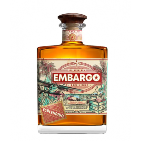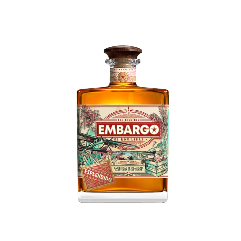 Le Rhum Embargo Anejo Esplendido est un assemblage de 4 provenances : Martinique, Guatemala, Cuba et Trinidad & Tobago. Il a subit un élevage plus long et offre une touche finale épicée.