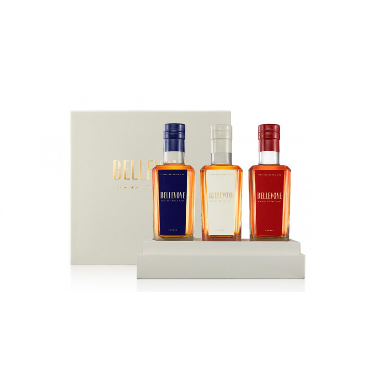 La marque BELLEVOYE vous présente son coffret de trois bouteilles de 20 cl déclinant ses trois créations de whisky Français. Un cadeau idéal pour l’amateur de grands whiskies!