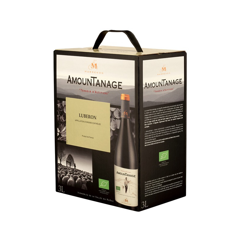 Vin rouge produit au pied du massif du Lubéron sur des parcelles avec un type de sol (éboulis calcaires).