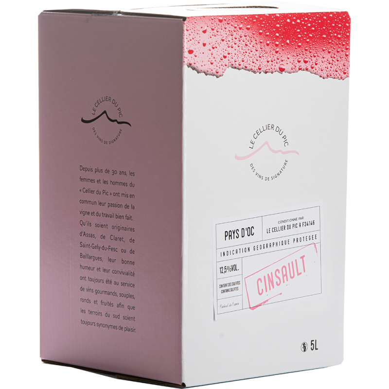 Parfait pour le retour des beaux jours, ce Bag In Box de 5 litres de IGP Pays d'oc rosé 100% Cinsault est produit dans le Languedoc au Nord de Montpellier.